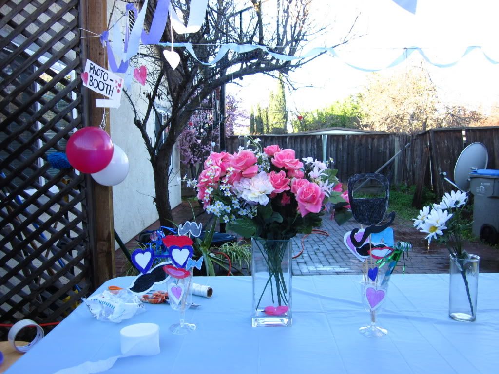 I decided that I wanted to throw the gang a Valentine's Day party this weekend. So I worked on some more props and decorations over night, and woke up early this morning to lay out my drawn ideas. I still have to pick up candles, heart shaped helium balloons, pink/red non-helium balloons, and set up my so-called photo booth! I hope they'll like it!