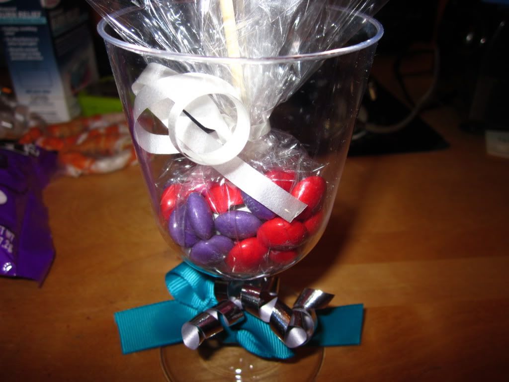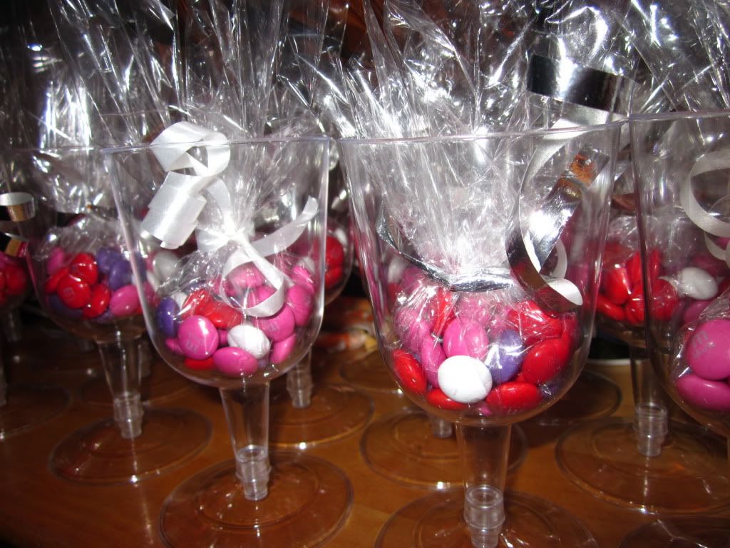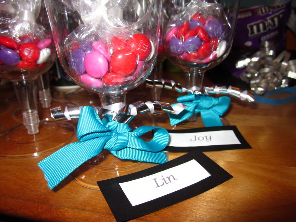 working on party favors with dark chocolate m&ms